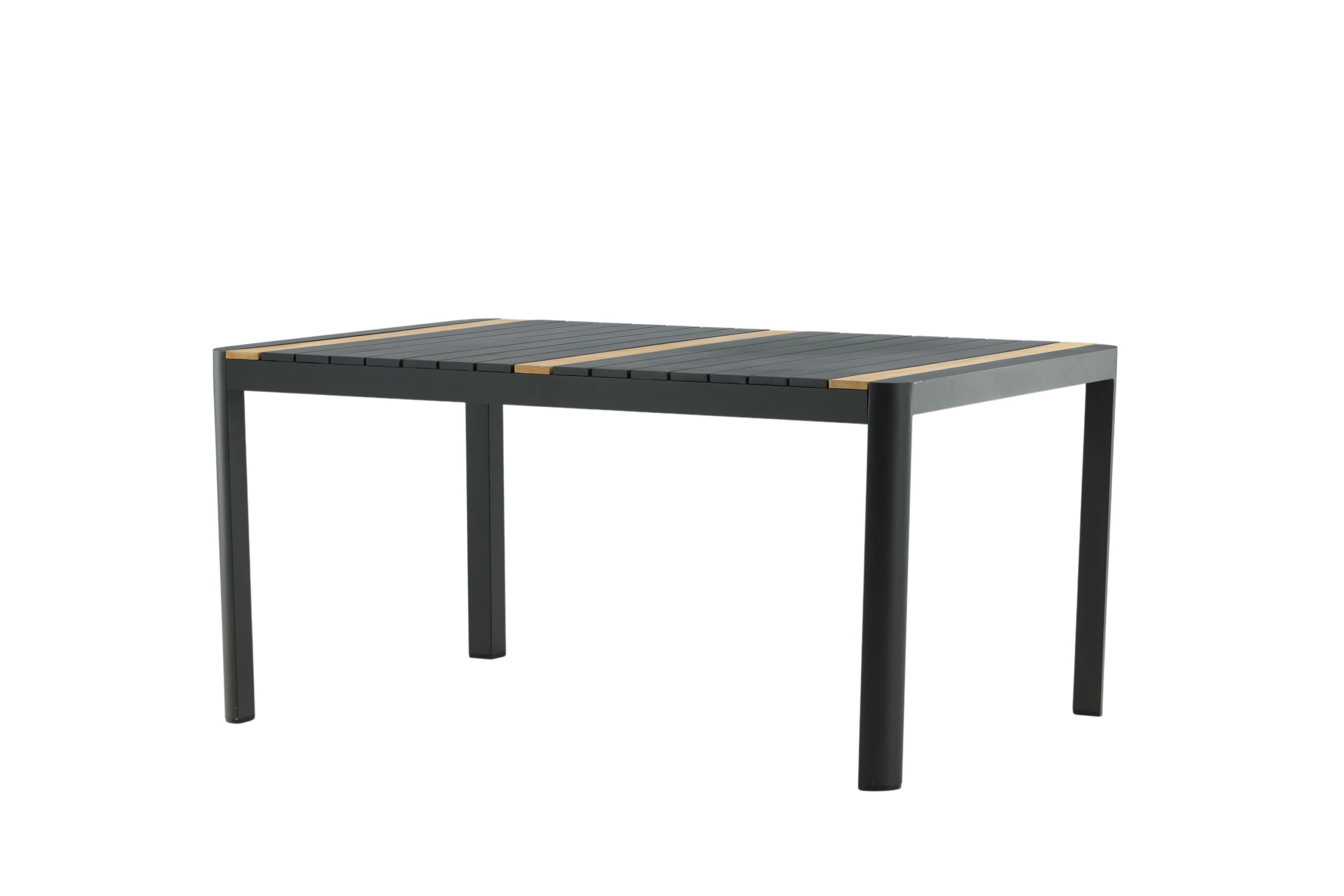 Togo – ett rektangulärt matbord som gör succé likväl till vardags som till fest! Det här läckra matbordet har en modern bordsskiva i teak och ett underrede i svart alluminium: en tidlös färgkombination. Den genomtänka helhetsdesignen är lika stilren som slitstark så här får du ett bord som kommer stå sig över tid!