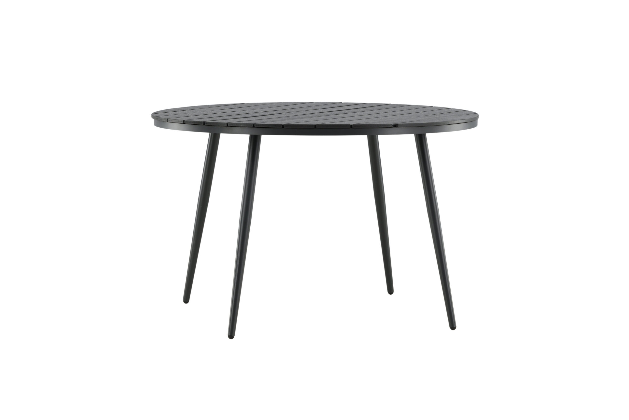 Ett runt matbord är perfekt för dig som vill skapa en trivsam, social och inbjudande känsla till uterummet eller altanen! Här får samtal och skratt flöda fritt kring ett stilrent matbord i klassisk look. Matbordet har en svart bordsskiva i aintwood och ett klassiskt underrede i svart aluminium – Gör er redo för utelivet och låt tiden här bli dagens höjdpunkt!