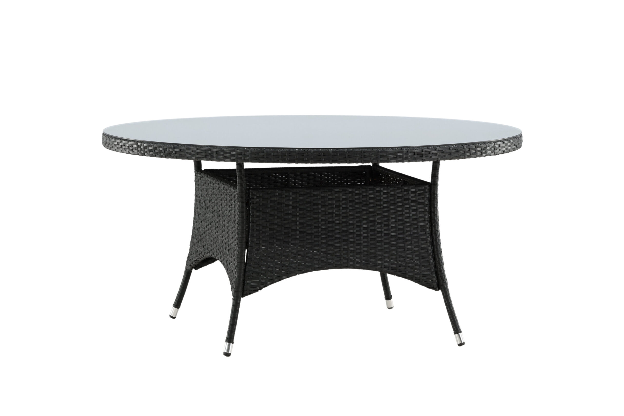 Volta är ett runt matbord i robust design som gör ett hållbart och charmigt intryck! Bordsskivan är i stilrent glas och underredet i slitstark, svart konstrotting. Möblera i uterummet eller på uteplatsen och låt middagarna utomhus bli dagens höjdpunkt – här hamnar ingen på kanten!