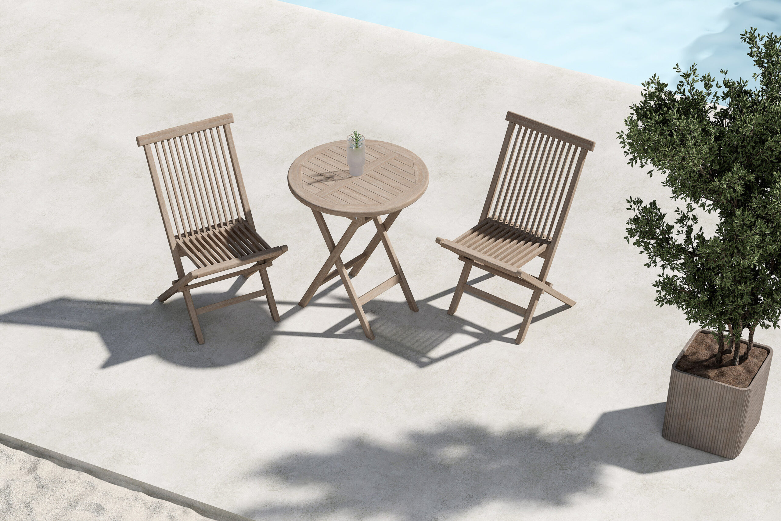 Teak är ett slitstarkt och vädertåligt material som med tiden utvecklar en vacker patina. Kenya caféset är perfekt för dig som vill ha en elegant och naturlig möbelgrupp som ger din utomhusmiljö en avslappnad och stilfull känsla.