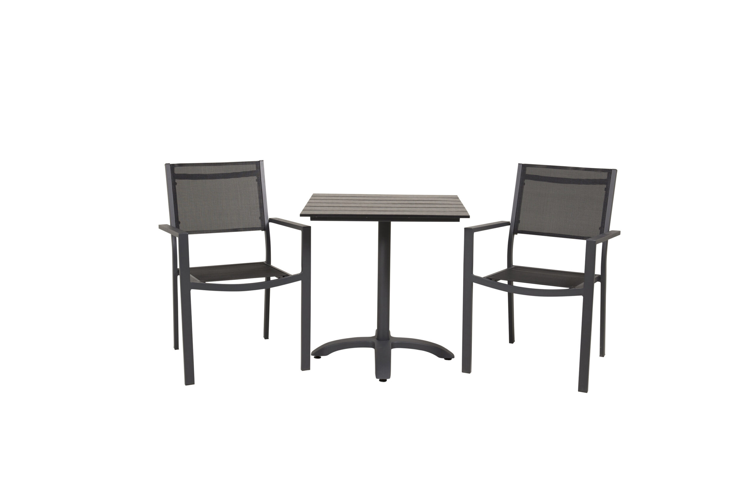 Stilren och praktisk matgrupp i nätt storlek. Här kombineras vårt omtyckta bord från Colorado och stolar från Copacabana i matchande svart kulör. Möblerna är lätta och enkla att flytta runt. Den smakfulla helheten gör att matgruppen enkelt passar in i de flesta miljöer och ger en känsla av enkelhet samtidigt som lyx. Här kan du avnjuta morgonkoppen på din uteplats eller duka fram fikan till den soliga lunchen i sommar – möblera din nya favoritplats med en smart matgrupp!