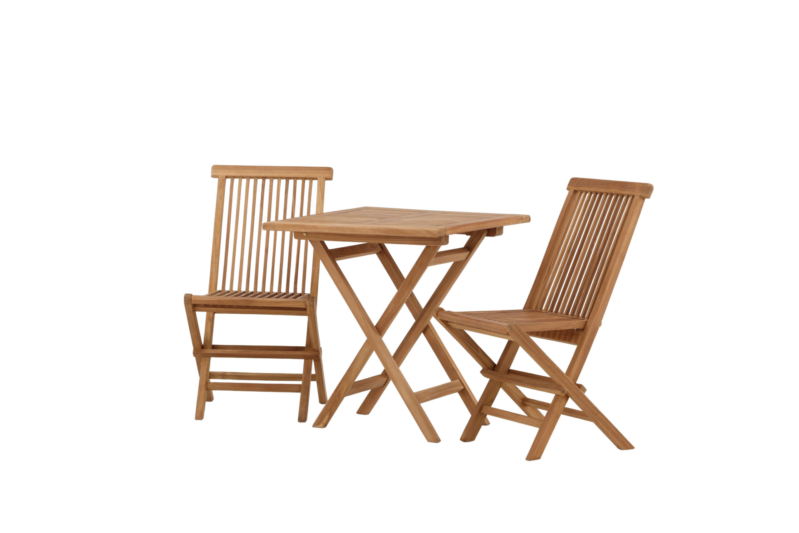 En läckert matchande cafégrupp i modern design och lyxig look! Kenya cafébord går att fälla ihop och det perfekta bordet i vacker teak som passar utmärkt för sommarens alla utefrukostar och eftermiddagsfikor. Med sitt klassiska utförande och smidiga design är bordet enkelt att matcha och smidigt att flytta runt. Mått: 70×70 cm. Här tillsammans med trendsäkra matstolar från samma serie i matchande teak. Stolarna är hopfällbara och har en inbjudande design – njut av fikan utomhus i sommar!