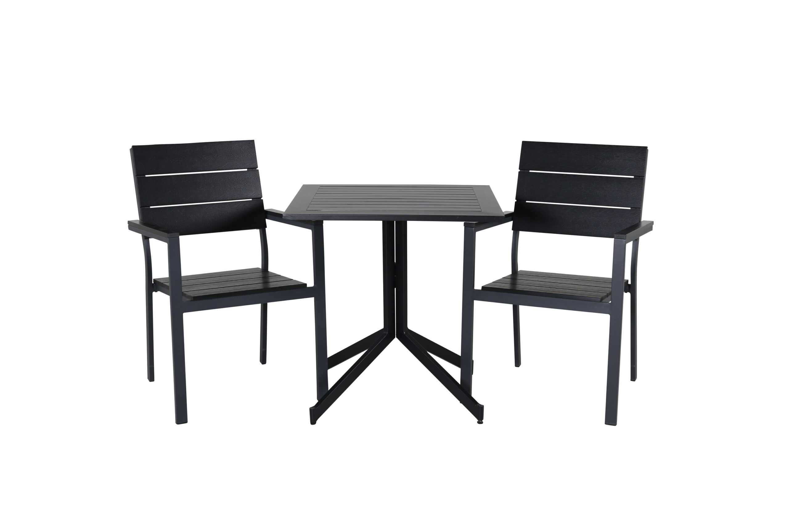 Det klassiska cafébordet Way gör succé på de flesta uteplatser. Här kombineras bordet med två matstolar från serien Levels som är en riktig designikon och passar lika bra både i klassiska och moderna miljöer. En liten, nätt och modern matgrupp i elegant svart kulör som passar perfekt på balkongen eller altanen!