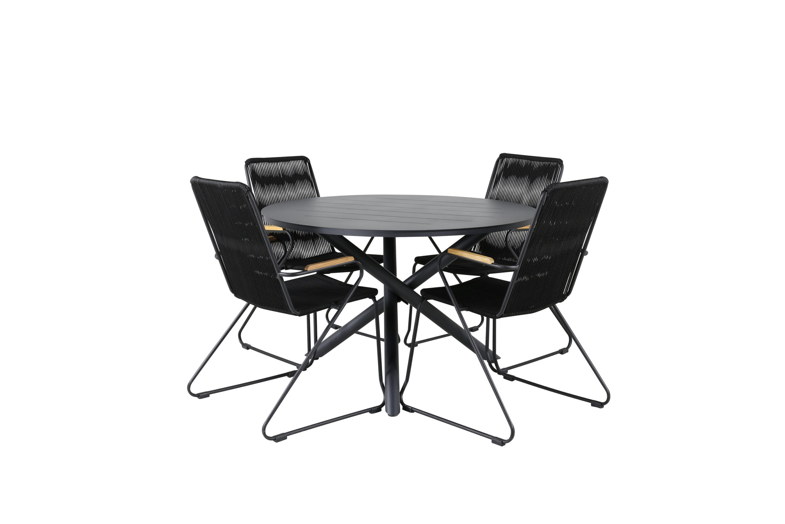 Bois, vår moderna, snygga och slitstarka matstol med alla rätt! Bois har en bekväm design med armstöd i teak och svart sits i rep. En möbel som bjuder in till många trivsamma stunder. Här tillsammans med vårt runda matbord Alma i svart aluminium. Njut lite extra av härliga måltider utomhus och möblera altanen i en stilren anda!