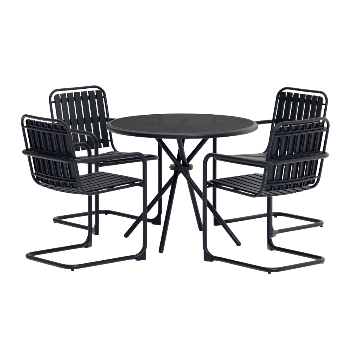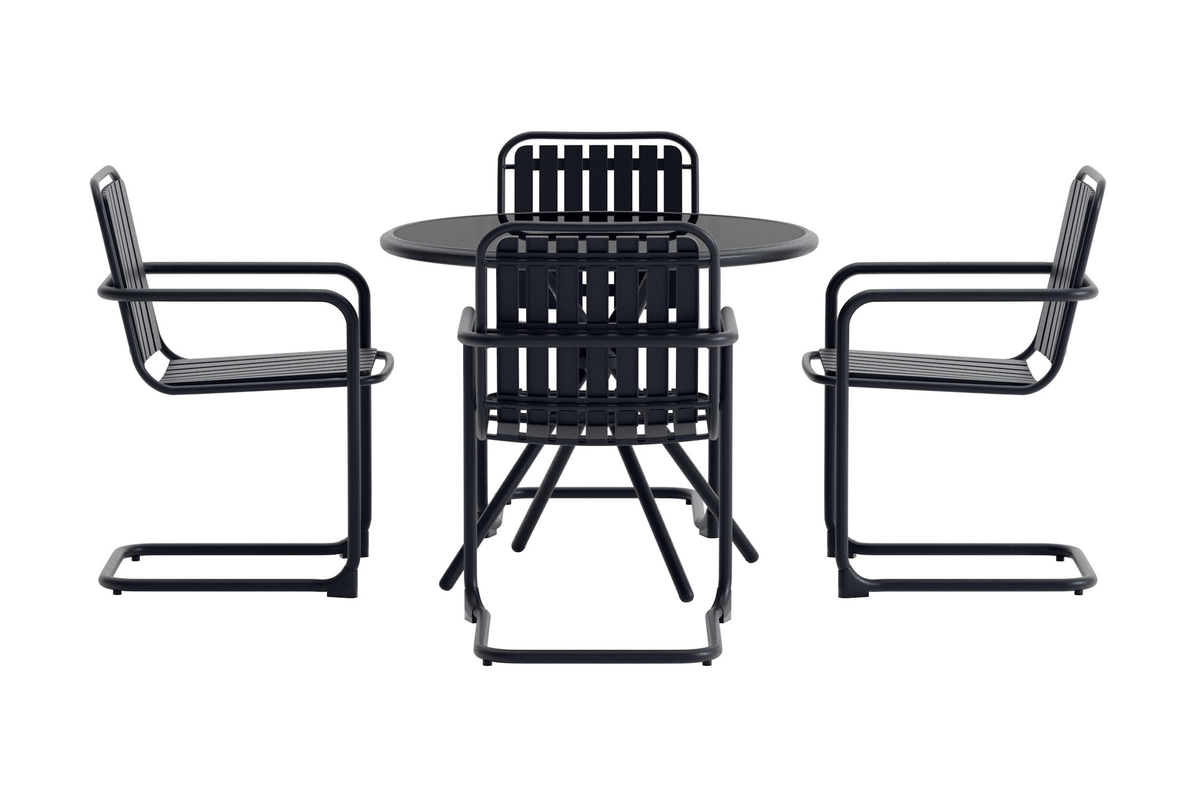 Matgrupp Utomhus – Venture Home Chios Runt Matbord Ø90 + 4 Matstolar Svart