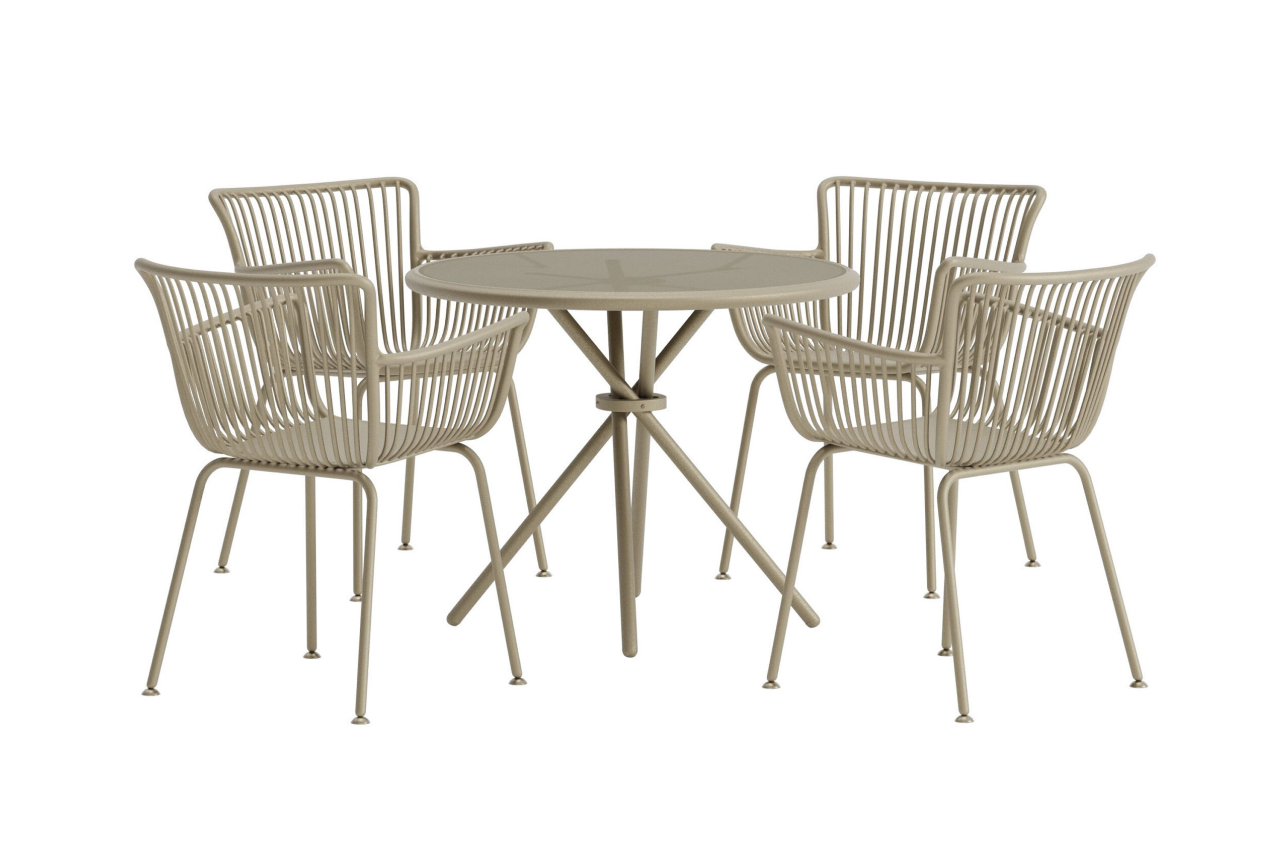 Sifnos matgrupp i beige är en stilfull och modern lösning för uteplatsen eller trädgården. Gruppen består av ett runt bord och fyra stolar med en luftig och elegant design som ger ett inbjudande uttryck. De bekväma stolarna gör att du gärna sitter kvar länge, medan den enhetliga färgsättningen skapar en harmonisk helhet. Sifnos matgrupp är det perfekta valet för dig som vill kombinera enkelhet, komfort och tidlös design vid matplatsen utomhus.