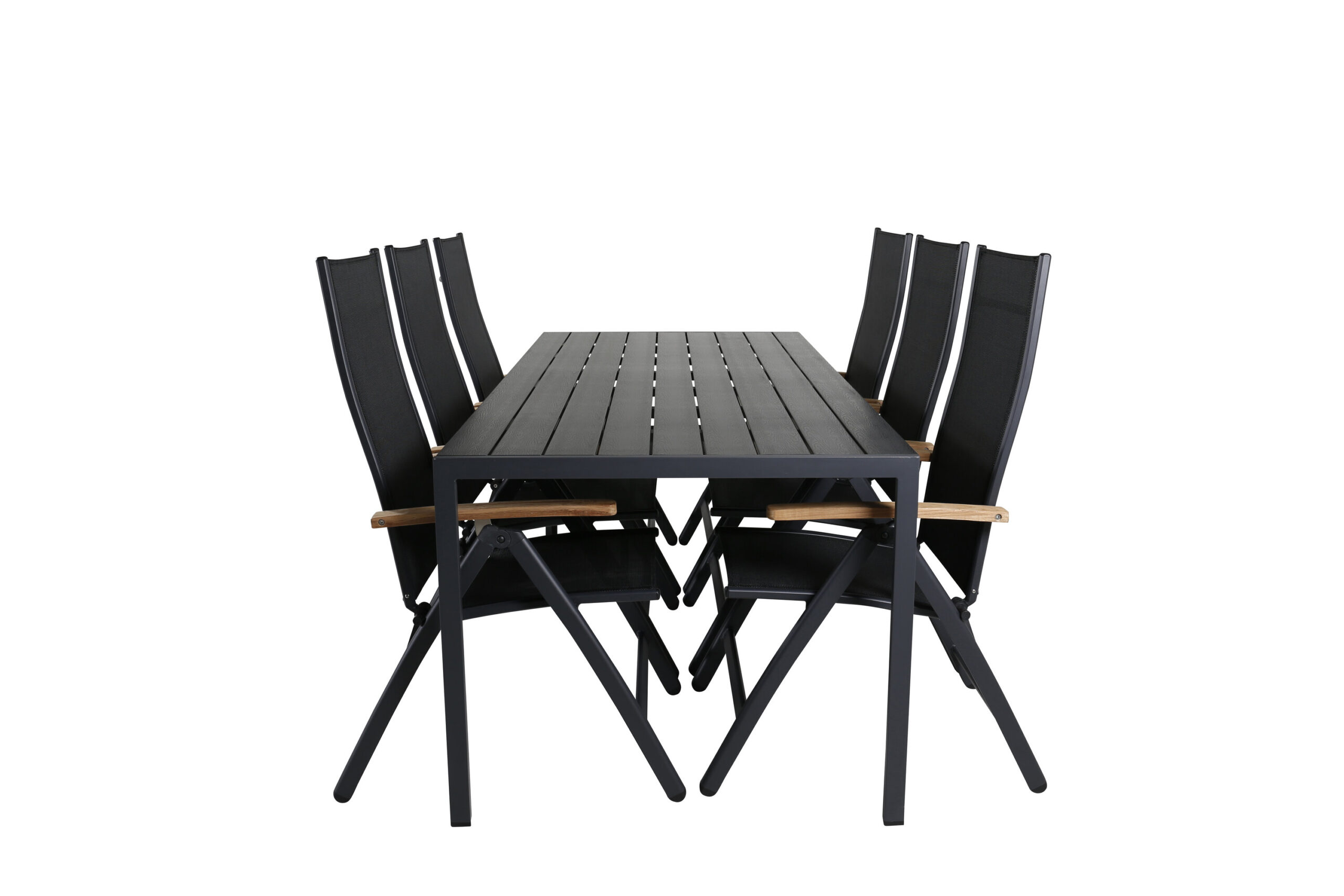 Matgrupp Utomhus – Venture Home Break Matbord 205×90 Svart + 6 Panama Positionsstolar Svart/Natur