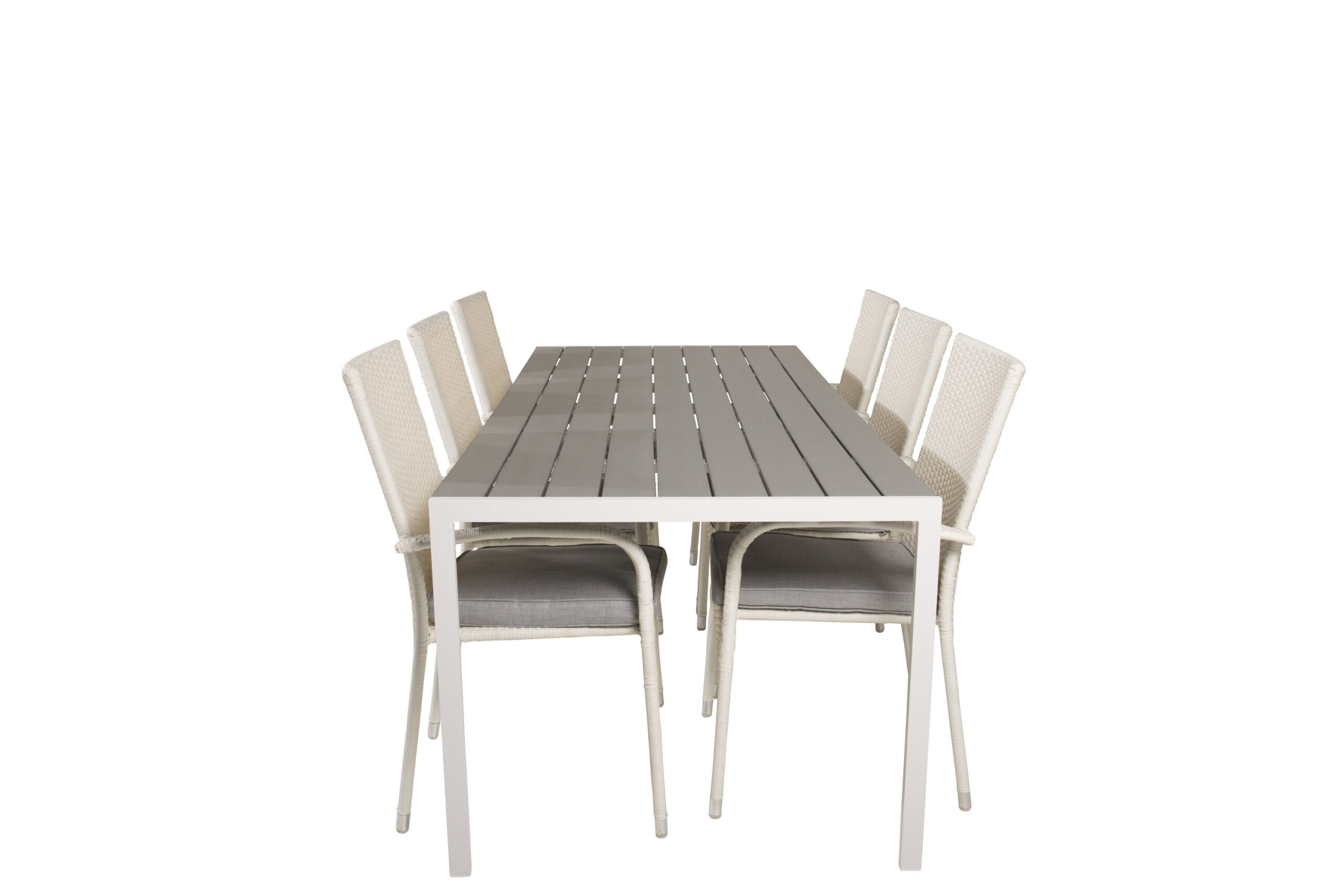 Matgrupp Utomhus – Venture Home Break Matbord 205×90 Vit/Grå + 6 Anna Karmstolar Vit