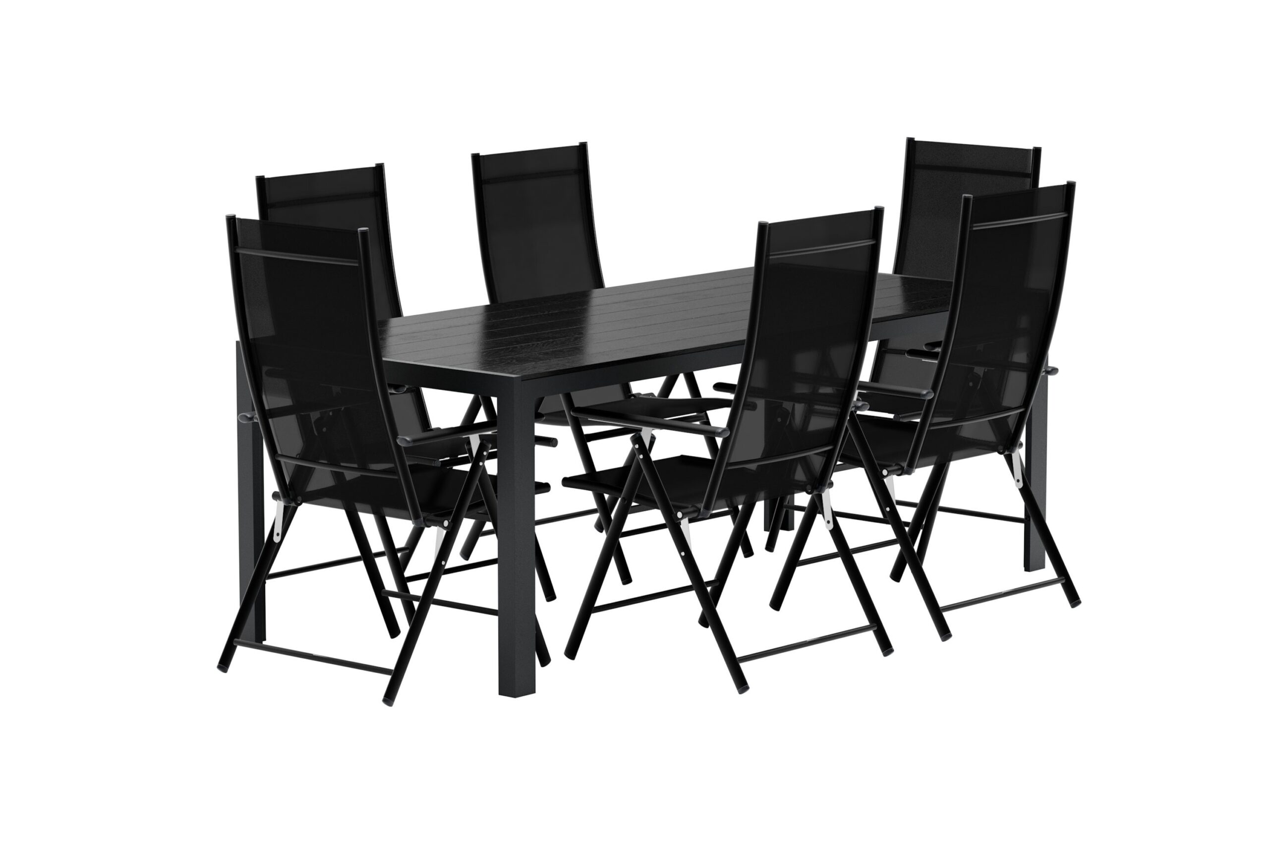 Skapa en stilren och funktionell matplats utomhus med den moderna kombinationen av Lavenzo matstolar och Break matbord. Tillsammans bildar de en praktisk och estetisk grupp som passar perfekt på altanen, terrassen eller i uterummet. Lavenzo matstol har en elegant svart stålram som ger ett modernt och stilrent uttryck. Den bekväma sitsen i textilene är enkel att hålla ren och skapar en skön sittkomfort. Stolen är hopfällbar för smidig förvaring och utrustad med justerbart ryggstöd, vilket gör det lätt att hitta en komfortabel position – oavsett om du äter middag eller bara vill koppla av. Break matbord har en klassisk nordisk formgivning med raka linjer, svart bordsskiva i polywood och stabila ben i aluminium. Det moderna uttrycket gör bordet lätt att matcha och skapar en naturlig mittpunkt för både vardagliga måltider och sociala stunder utomhus. Den generösa rektangulära ytan ger gott om plats för hela sällskapet.
