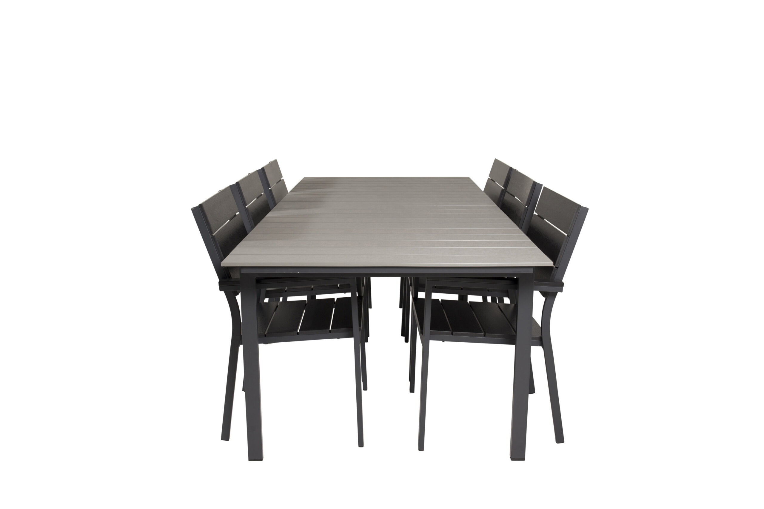 En matgrupp i modern och stilren design. Matbord Levels och matstolar Levels är perfekta kombinationen till trädgårdens hjärta!