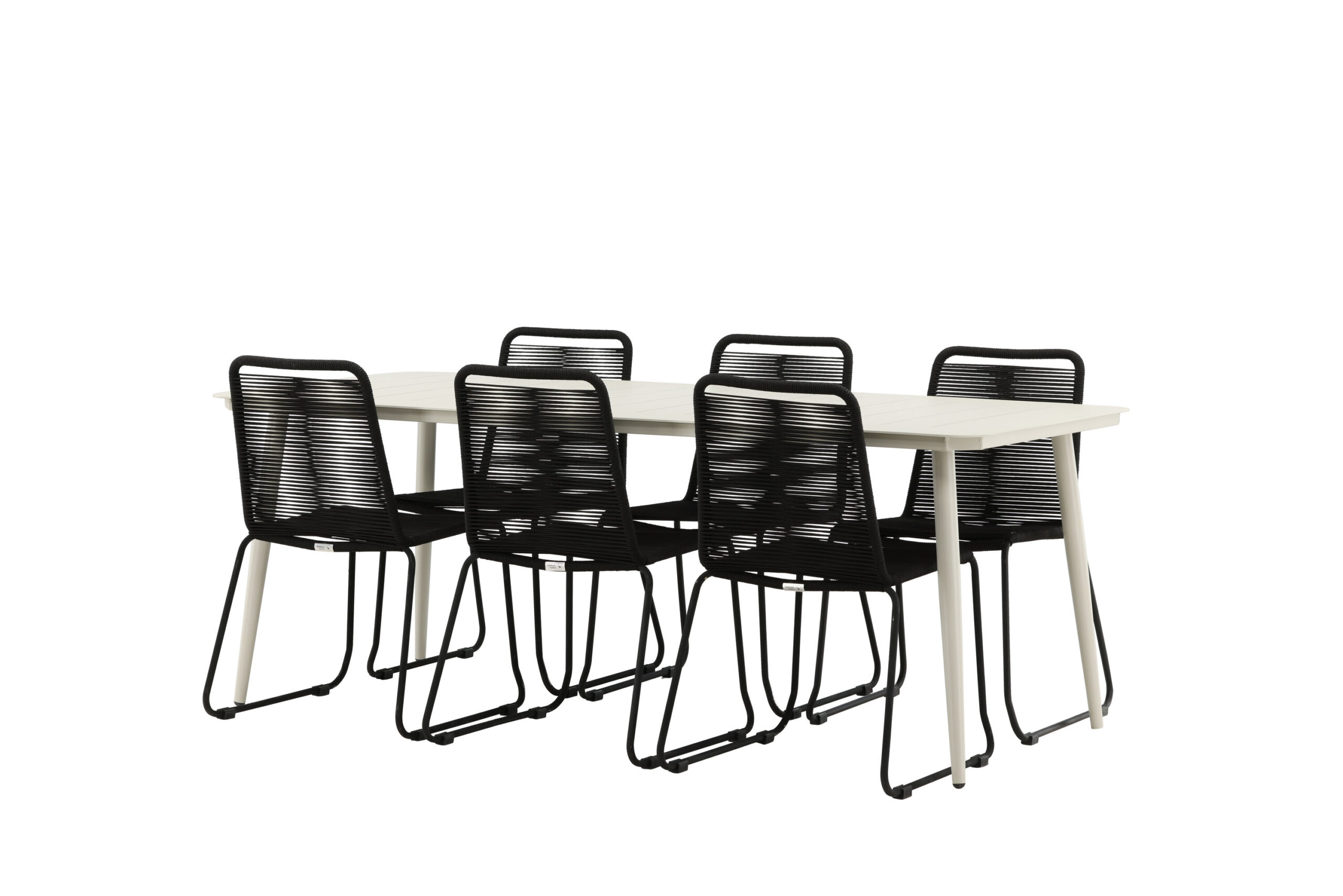 Matgrupp Utomhus – Venture Home Lina Matbord 200×90 Beige + 6 Lindos Matstolar Svart