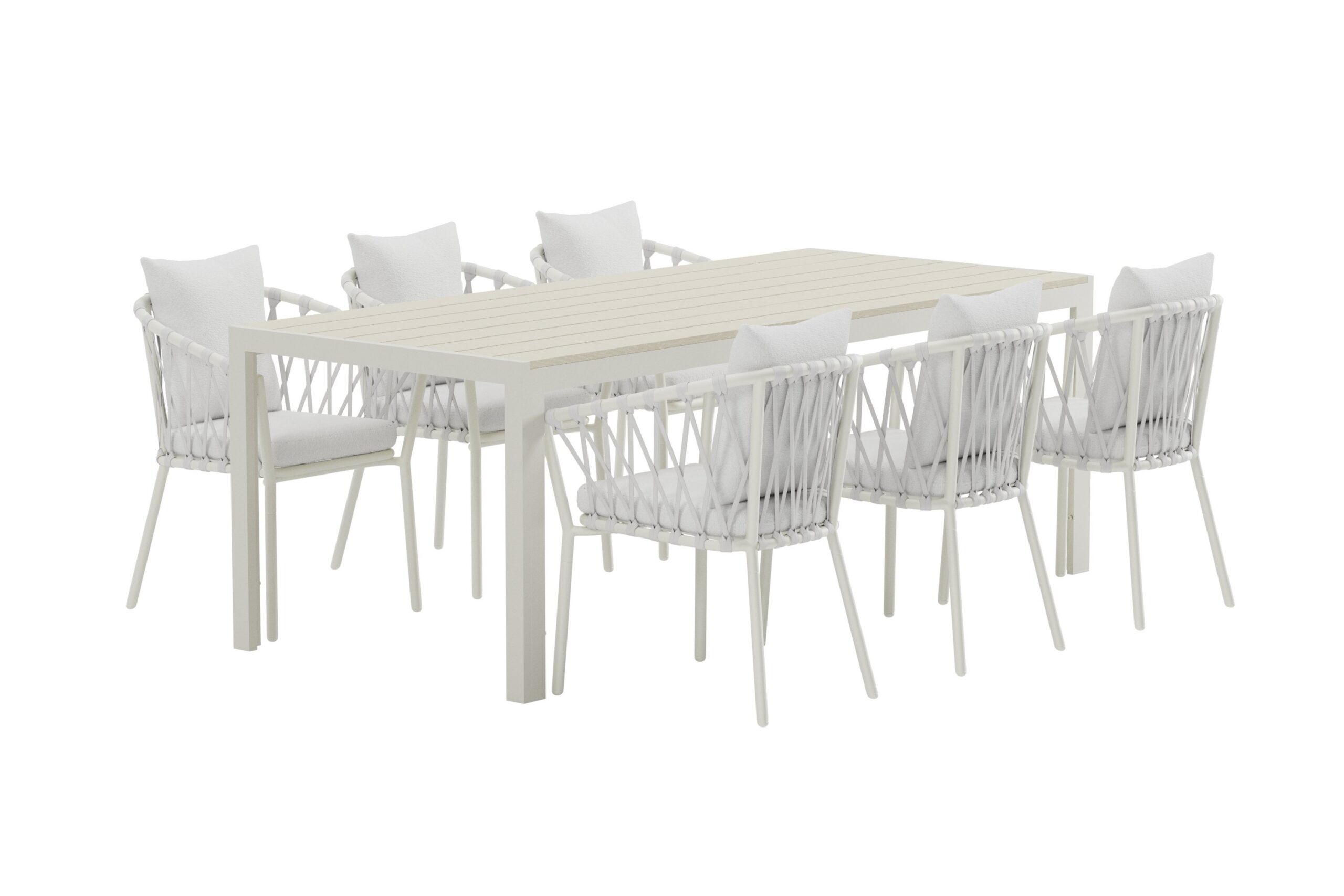 Matgrupp Utomhus – Venture Home Mirko Matbord 205×90 Vit/Beige + 6 Linos Matstolar Vit inkl. dynor