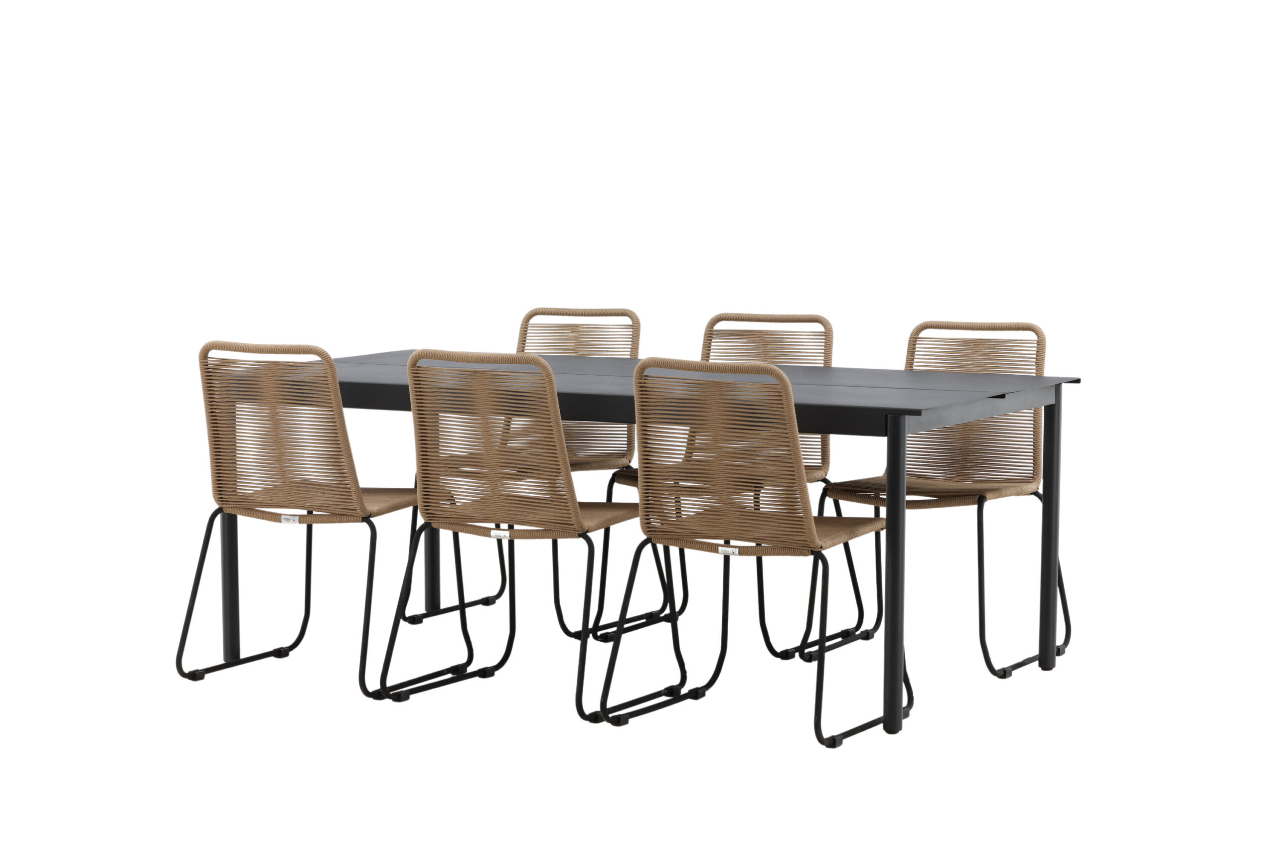 Matgrupp Utomhus – Venture Home Modena Matbord 200×100 Svart + 6 Lindos Matstolar Svart/Brun