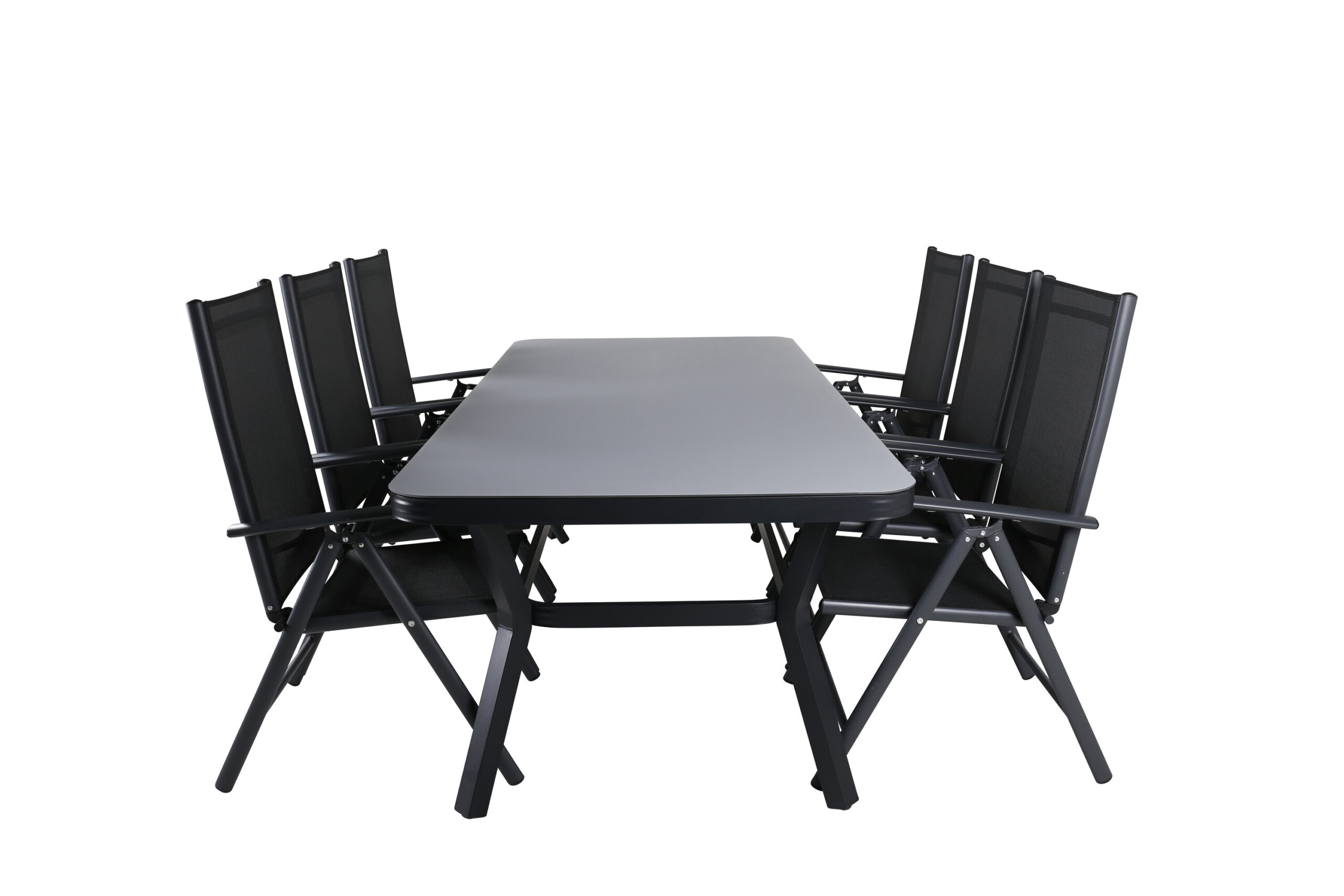 Låt den här vackert matchade matgruppen med modern känsla bli en naturlig samlingsplats på altanen. Matstolar Break har bra komfort och matbord Virya gör att du slipper oroa dig över att alla ska få plats.
