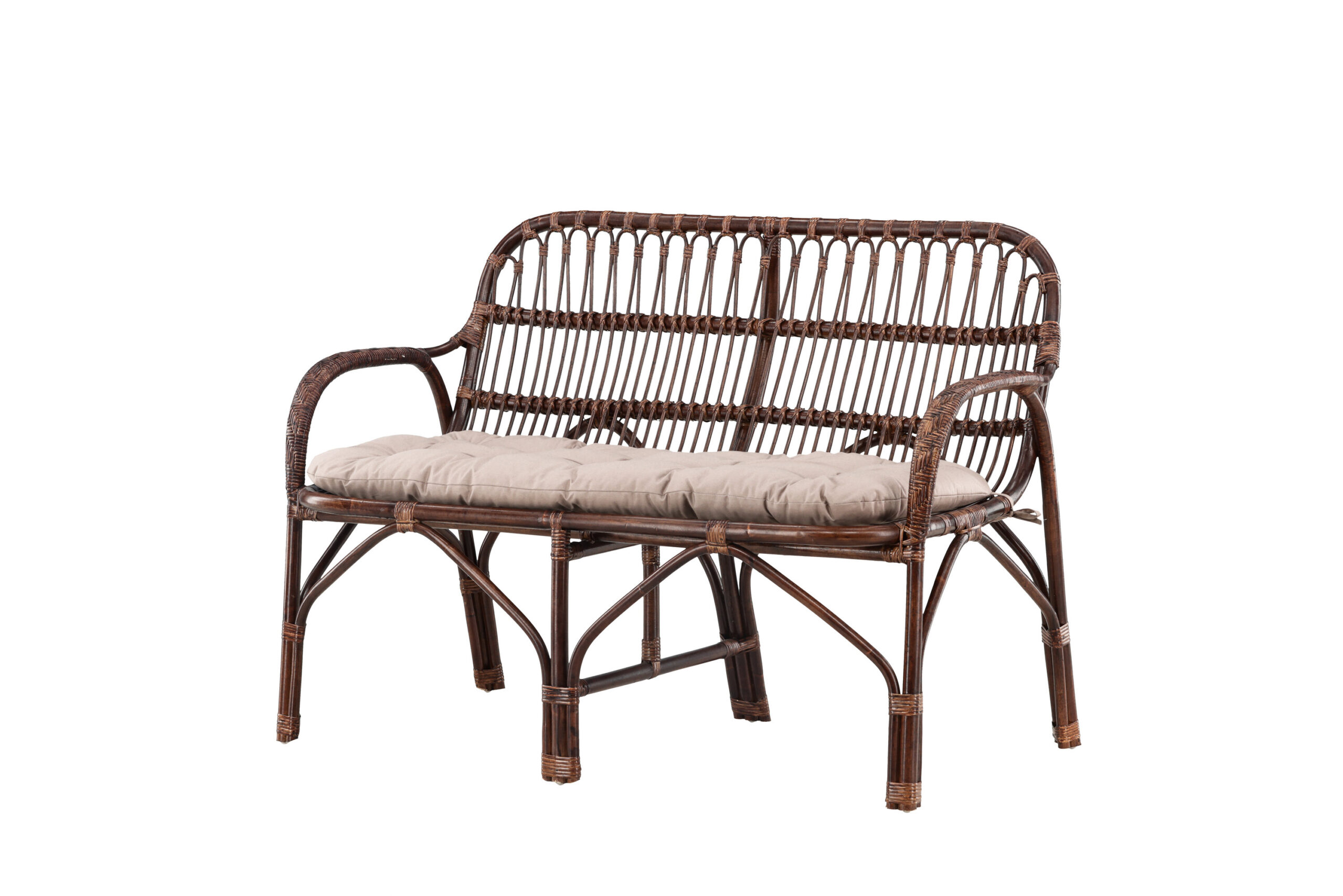 Bonnie soffan kombinerar komfort och stil med dess noggrant utformade rottingkonstruktion och de harmoniska färgvalen. Den bruna nyansen ger en jordnära känsla medan de beige dynorna skapar en ljus och luftig kontrast, vilket gör det till den ultimata platsen att koppla av och avnjuta en kopp kaffe.