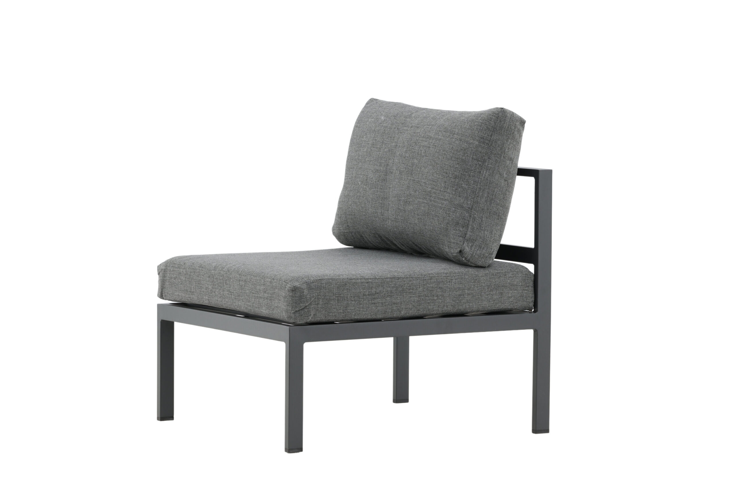 Med portabla moduler kan du anpassa och bygga loungegruppen du alltid drömt om! Den här mittdelen tillhör serien Copacabana och är i svart aluminium med mjuka grå dynor för extra komfort. Med hjälp av den här modulen kan du skräddarsy din soffgrupp efter smak och utrymme. Anpassa efter just din uteplats, förläng soffan eller gör det till något alldeles unikt!