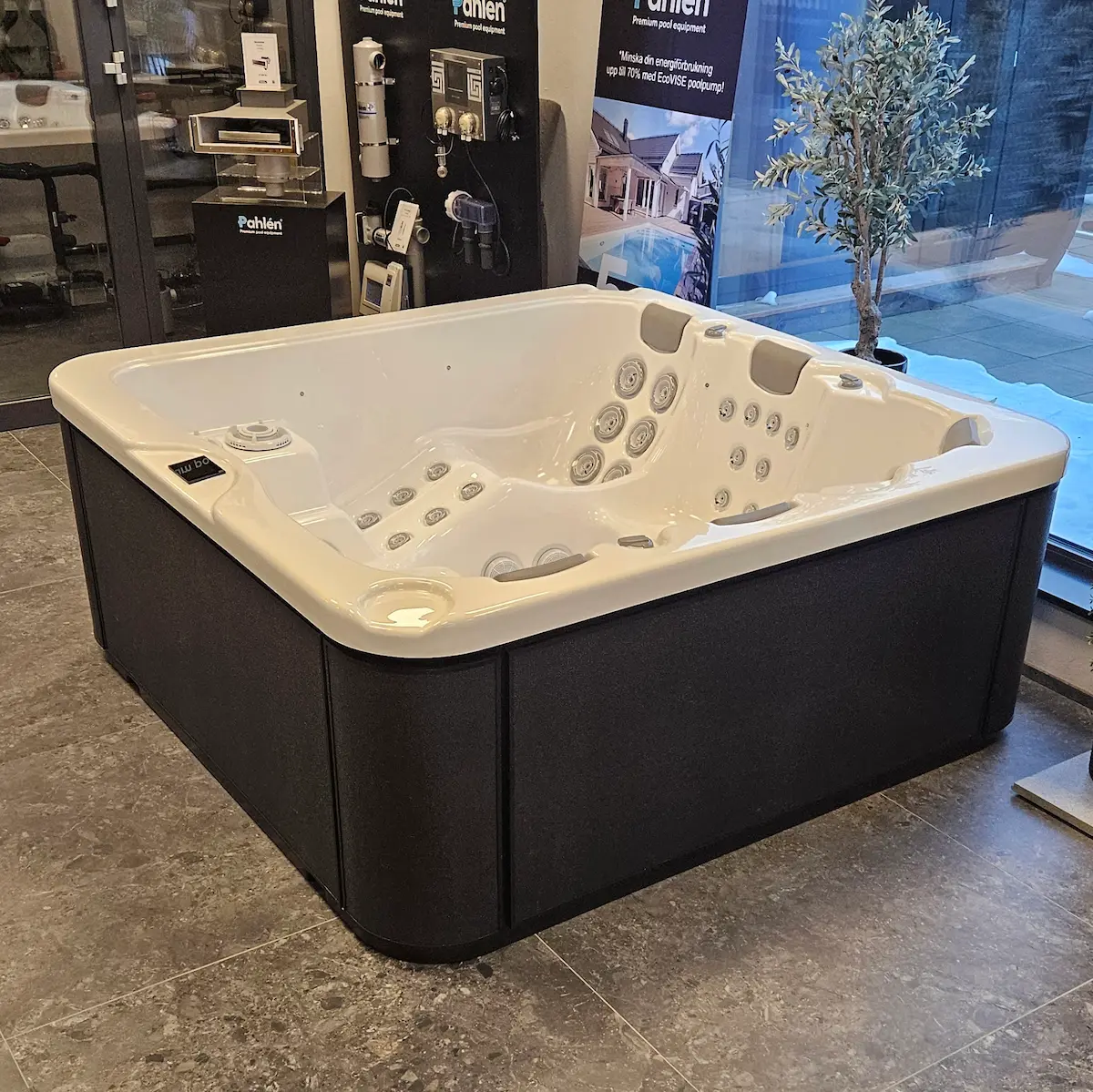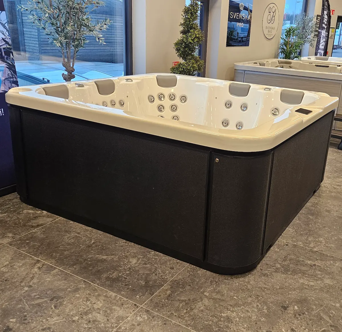 Ett tystgående och kostnadseffektivt svensktillverkat spabad. Badet är utrustat med extra stark värmare på 3,8 kW och har två massagepumpar, varav en är en Dual Speed pump som gör det möjligt att ställa trycket, två filter för effektiv rening samt ACS reningssystem för minimal skötsel. Badet har en undervattenslampa och nivåvattenbelysning i olika färger.