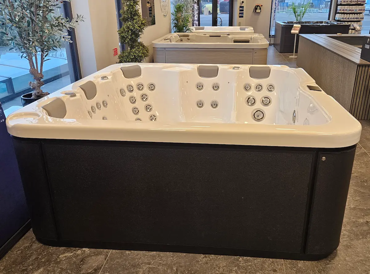 White Edition baden har en LEDupplyst ytterpanel i svart eller ljus alumi och levereras med ett helvitt skal med vita jets som ger ett väldigt elegant och modernt intryck.